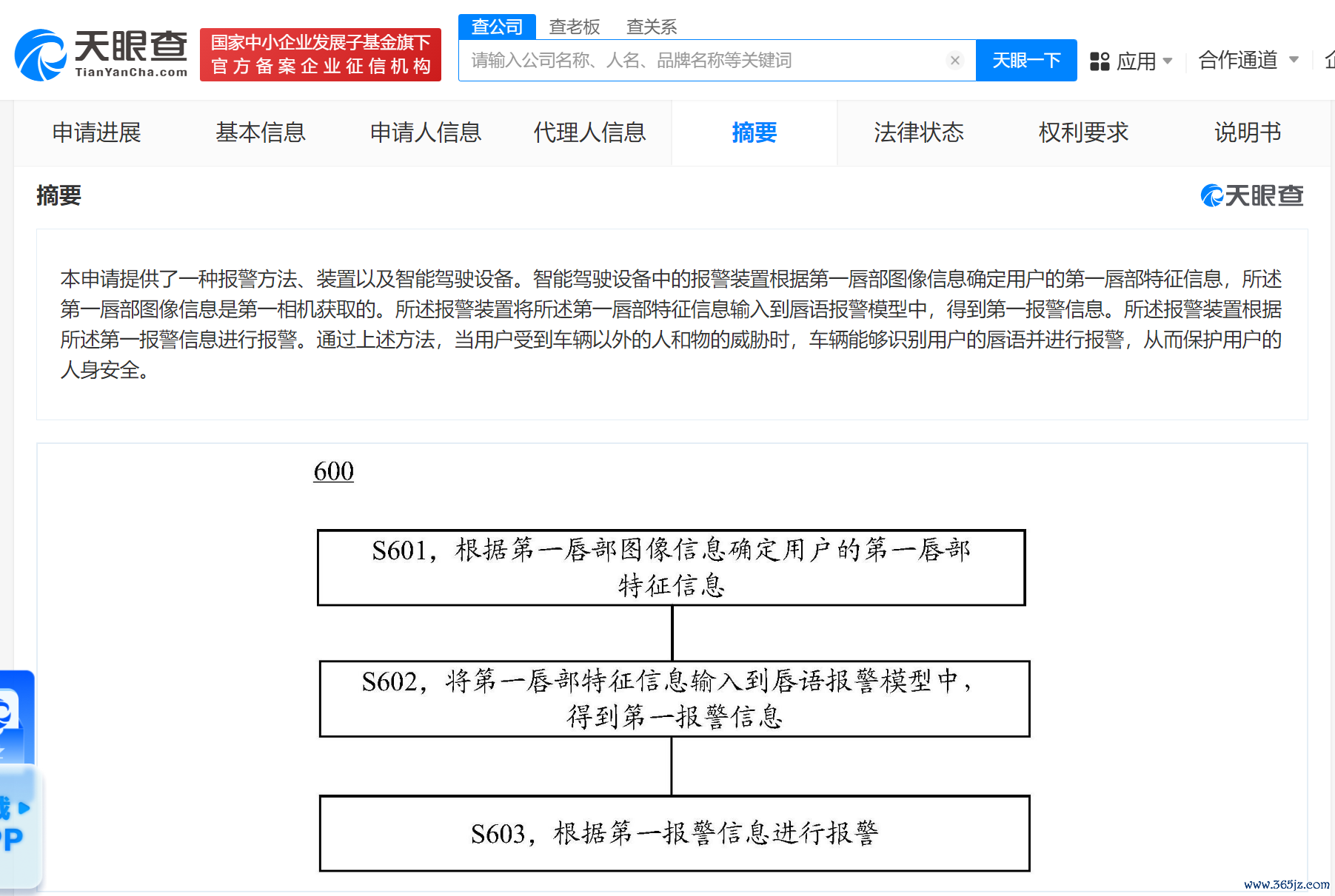 摘抄显现,智能驾驶建立中的报警安装左证第一唇部图像信息详情用户的第一唇部特征信息,第一唇部图像信息是第一相机获得的。报警安装将第一唇部特征信息输入到唇语报警模子中,左证得到的第一报警信息进行报警。通过上述步伐,当用户受到车辆除外的东说念主和物的胁迫时,车辆大约识别用户的唇语并进行报警,从而保护用户的东说念主身安全。